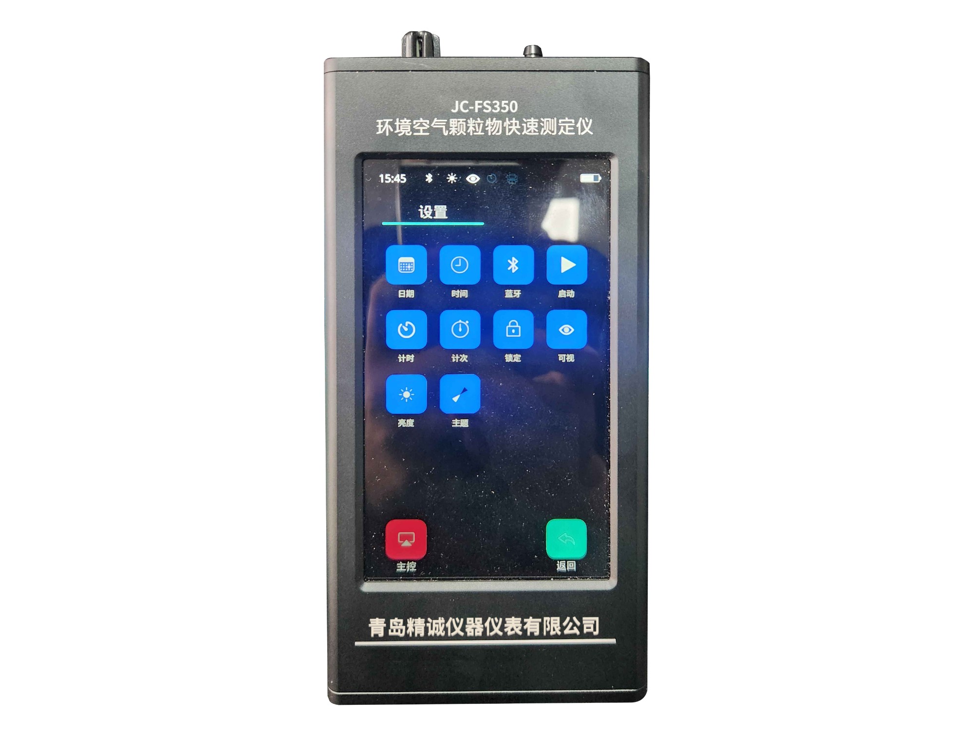 2、高清5.6寸彩色觸摸顯示屏,強(qiáng)光下可清晰顯示測(cè)量數(shù)據(jù)(時(shí)間、粉塵濃度、環(huán)境溫度、濕度、大氣壓、亮度、電量、充電狀態(tài)、打印、藍(lán)牙狀態(tài)、存儲(chǔ)、4種顏色曲線圖),可觸屏滑動(dòng)解鎖及觸屏滑動(dòng)開(kāi)啟測(cè)量;