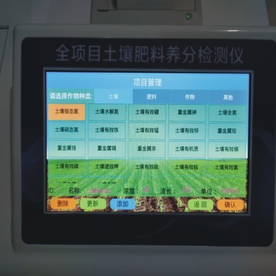 1.可檢測土壤及化肥、有機(jī)肥(含葉面肥、水溶肥、噴施肥等)、植株中的速效氮、速效磷、有效鉀、全氮、全磷、全鉀、有機(jī)質(zhì)、酸堿度、含鹽量,鈣、鎂、硫、鐵、錳、硼、鋅、銅、氯、硅等各種中微量元素以及鉛、鉻、鎘、汞、砷等各種重金屬含量,用戶可根據(jù)需要自由中文輸入近千個(gè)檢測項(xiàng)目。