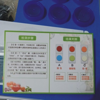 便攜式農(nóng)藥殘留速測儀是根據(jù)標(biāo)準(zhǔn)方法(GB/T5009.199-2003)速測卡法(紙片法)而專門設(shè)計(jì)的儀器。利用速測卡中的膽堿酯酶(白色藥片)可催化靛酚乙酸酯(紅色藥片)水解為乙酸與靛酚,由于有機(jī)磷和氨基甲酸酯類農(nóng)藥對膽堿酯酶的活性有強(qiáng)烈的抑制作用,使催化水解后的顯色發(fā)生改變。因此,根據(jù)顯色的不同,即可判斷樣品中含有機(jī)磷或氨基甲酸酯類農(nóng)藥的殘留情況。主要用于果、蔬、茶、糧食、水及土壤中有機(jī)磷和氨基甲酸酯類農(nóng)藥的快速檢測。