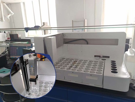 采用發(fā)布進(jìn)口電驅(qū)動(dòng)三軸機(jī)器人運(yùn)動(dòng)臂,代替人工,批量自動(dòng)轉(zhuǎn)移樣品,實(shí)現(xiàn)從待測(cè)區(qū)至試劑添加區(qū)——樣品消解區(qū)——自動(dòng)滴定區(qū)的樣品杯轉(zhuǎn)移。